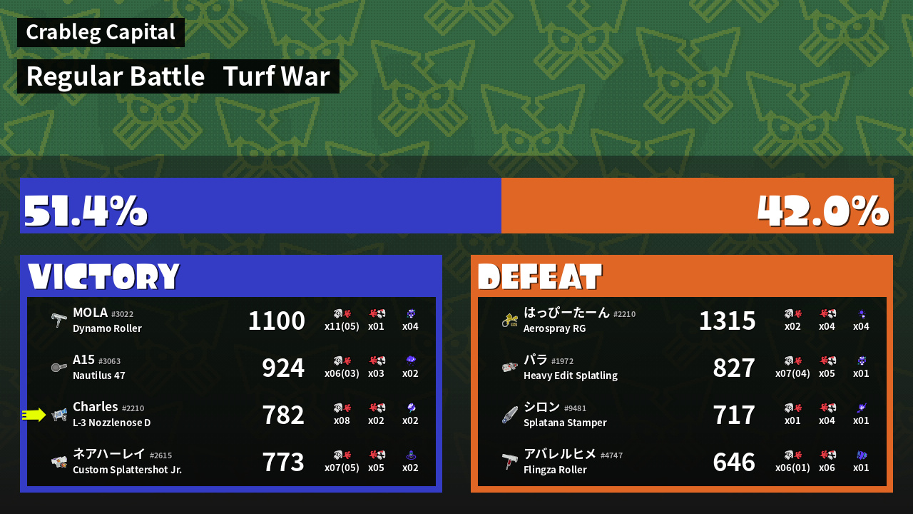 | Mode | Turf War - Regular Battle | ||