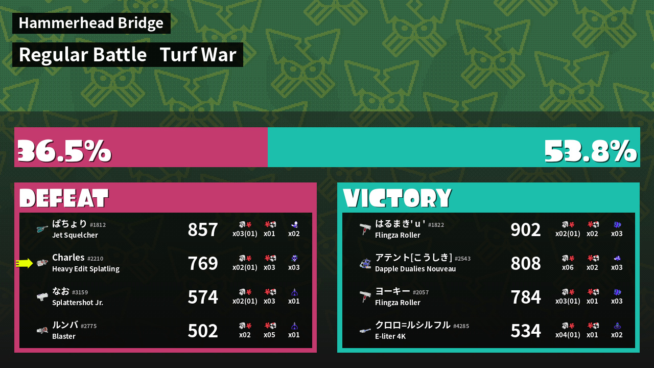 | Mode | Turf War - Regular Battle | ||