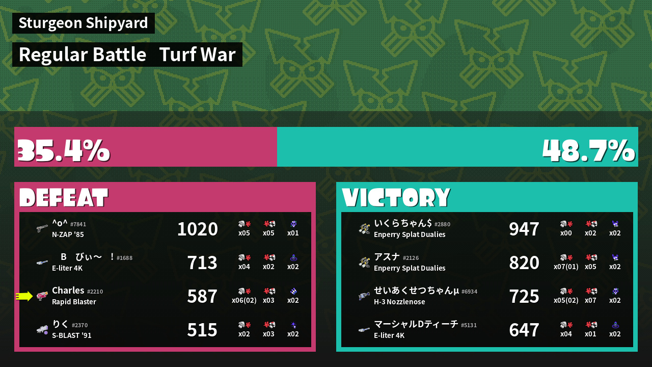 | Mode | Turf War - Regular Battle | ||