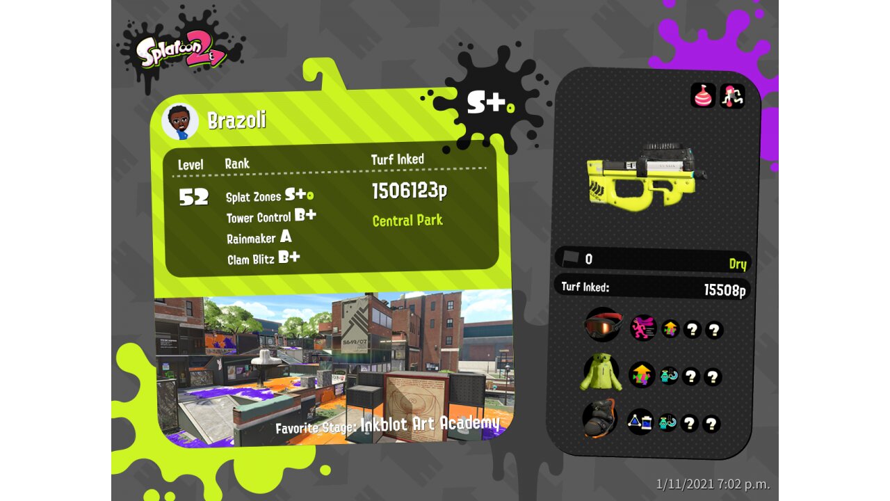 | Name | Weapon | Level | Rank | Inked | k+a/sp | k/d |