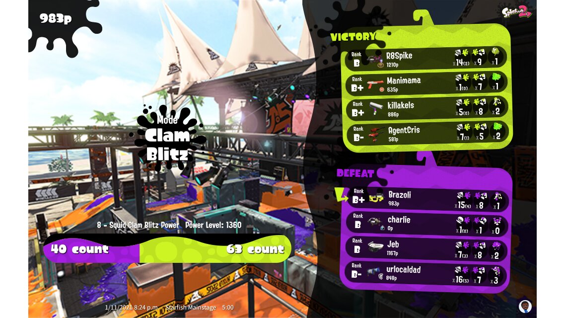 | Mode | Clam Blitz - Ranked Battle | |||||||||||||||||||||||||||||||||||||