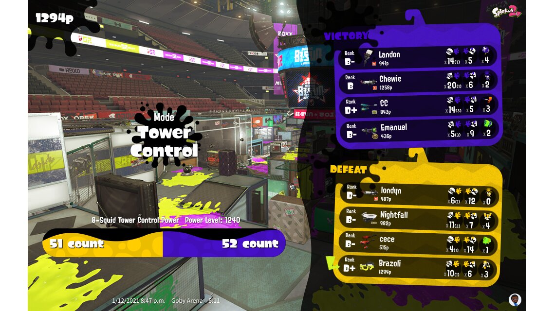 | Mode | Tower Control - Ranked Battle | |||||||||||||||||||||||||||||||