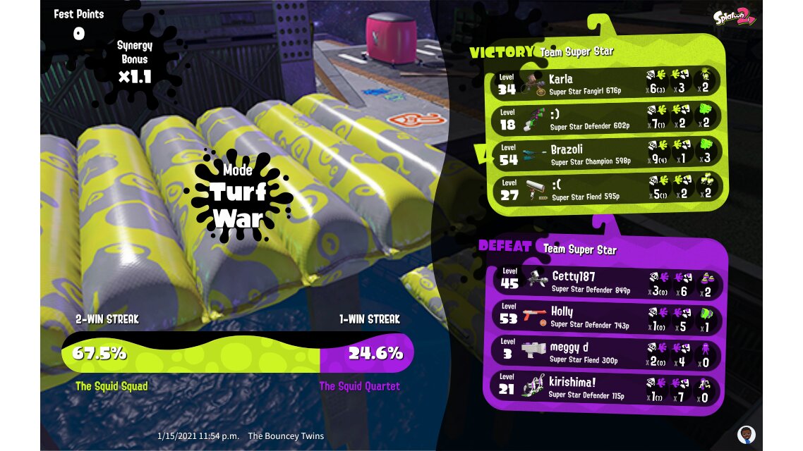 | Splatfest Title | Super Star Champion → Super Star King | |||||||||||||||||||||||||||||||