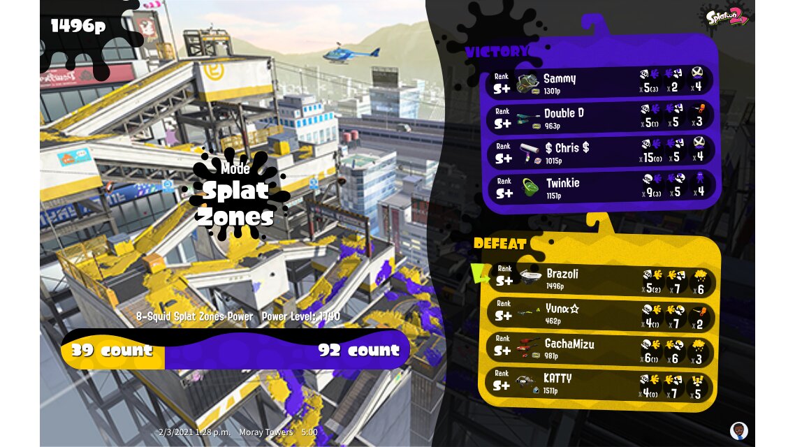 | SplatNet Battle # | 2,036 | ||||||||||||||||||||||||||||||||||