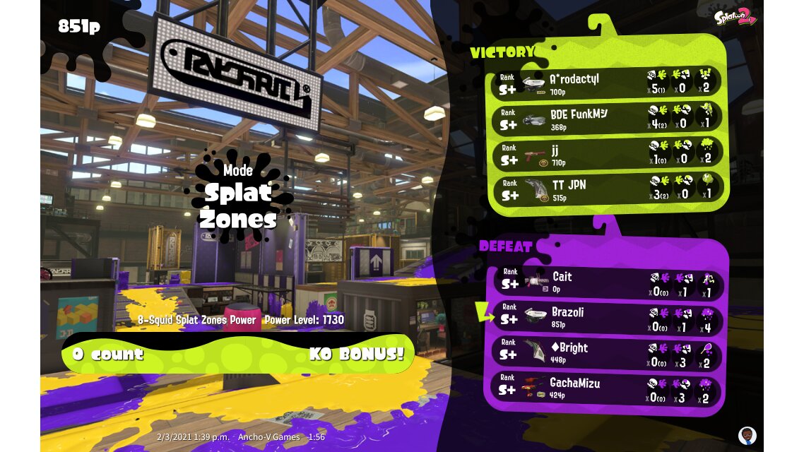 | Mode | Splat Zones - Ranked Battle | ||||||||||||||||||||||||||||||||||