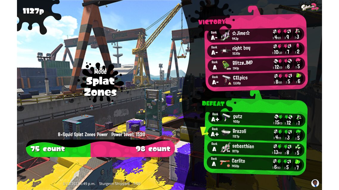 | SplatNet Battle # | 2,754 | ||||||||||||||||||||||||||||||||||