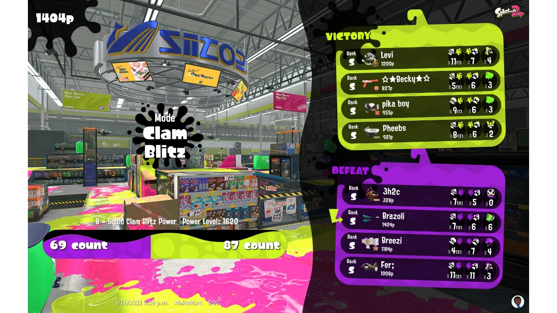 | Mode | Clam Blitz - Ranked Battle | ||||||||||||||||||||||||||||||||||||||||