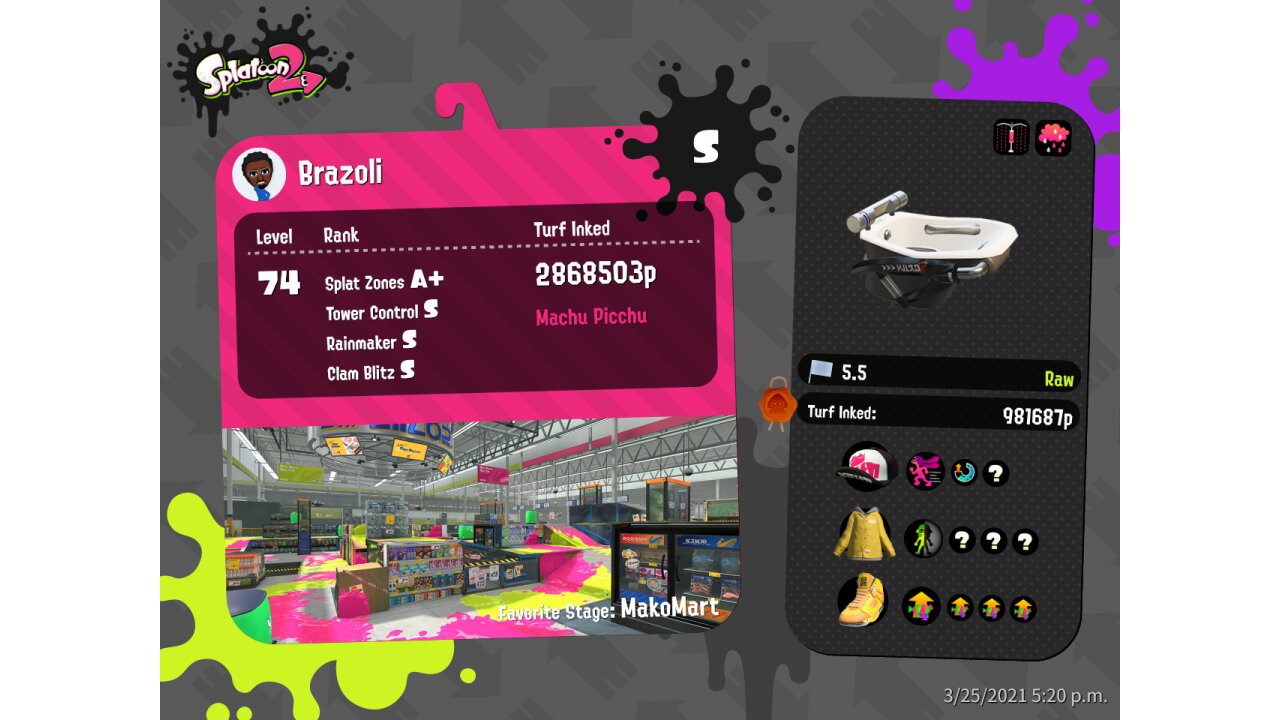 | Mode | Splat Zones - Ranked Battle | |||||||||||||||||||||||||||||||