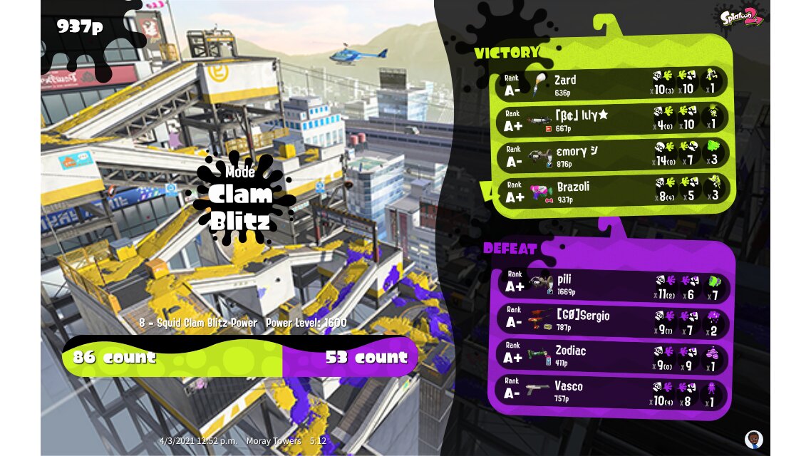 | Mode | Clam Blitz - Ranked Battle | ||||||||||||||||||||||||||||||||||||||||
