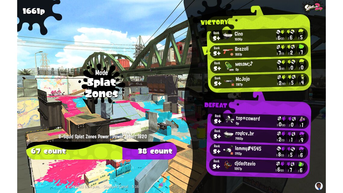 | Mode | Splat Zones - Ranked Battle | |||||||||||||||||||||||||||||||