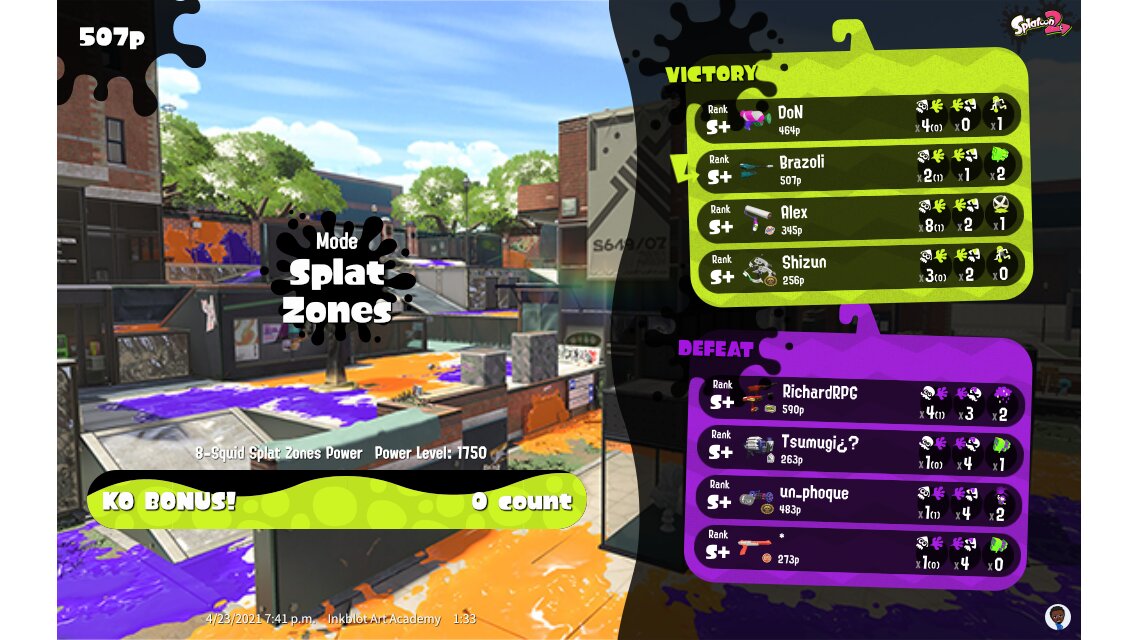 | Mode | Splat Zones - Ranked Battle | |||||||||||||||||||||||||||||||