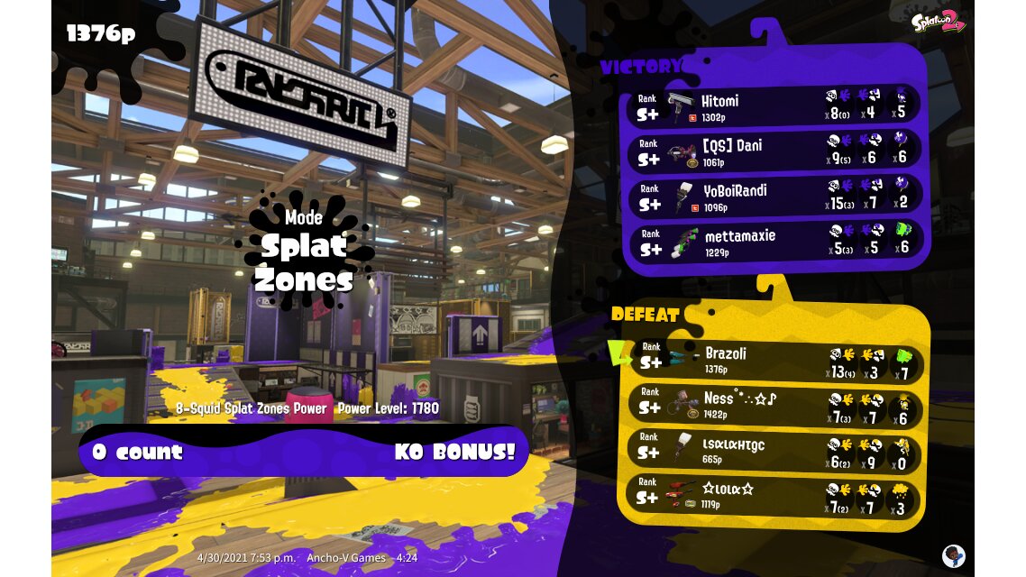 | Mode | Splat Zones - Ranked Battle | |||||||||||||||||||||||||||||||||||||