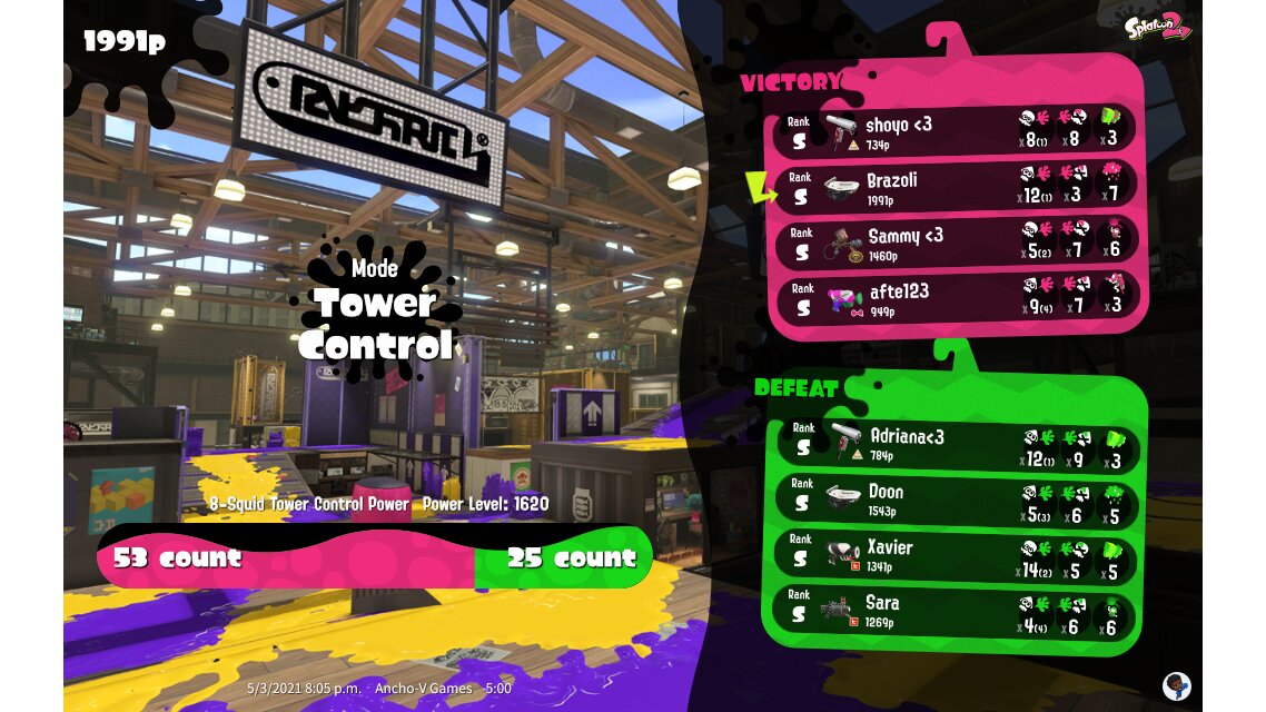 | Mode | Tower Control - Ranked Battle | ||||||||||||||||||||||||||||||||||