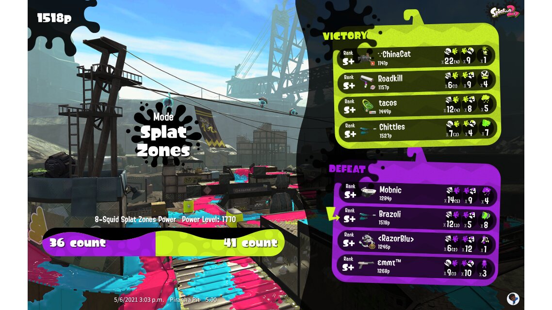 | SplatNet Battle # | 4,141 | |||||||||||||||||||||||||||||||||||||