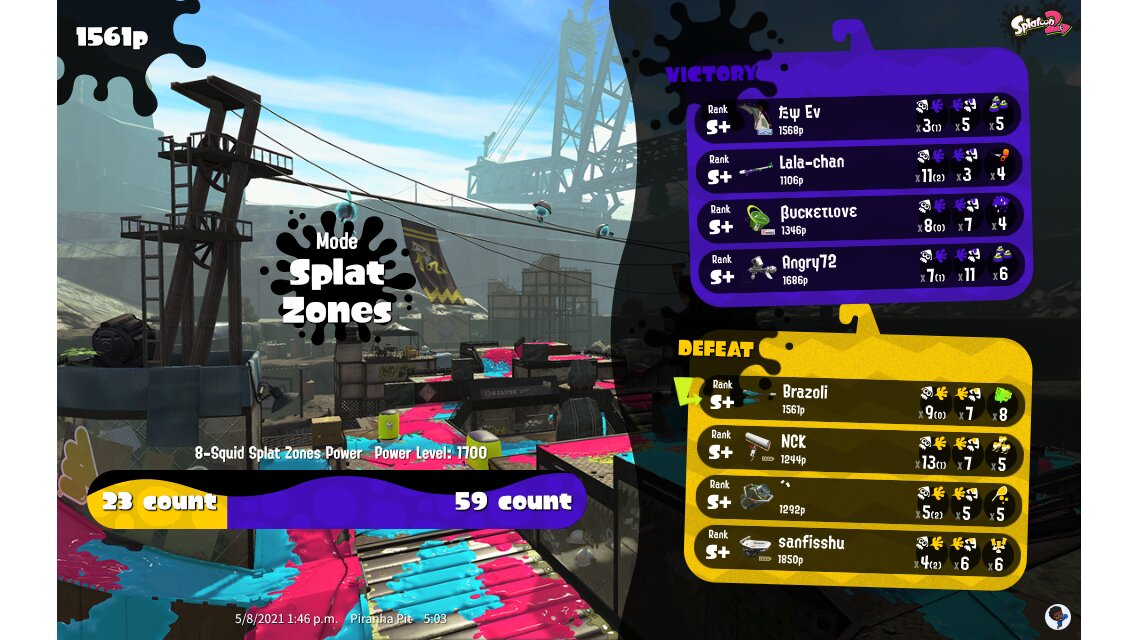 | Mode | Splat Zones - Ranked Battle | |||||||||||||||||||||||||||||||||||||||||||