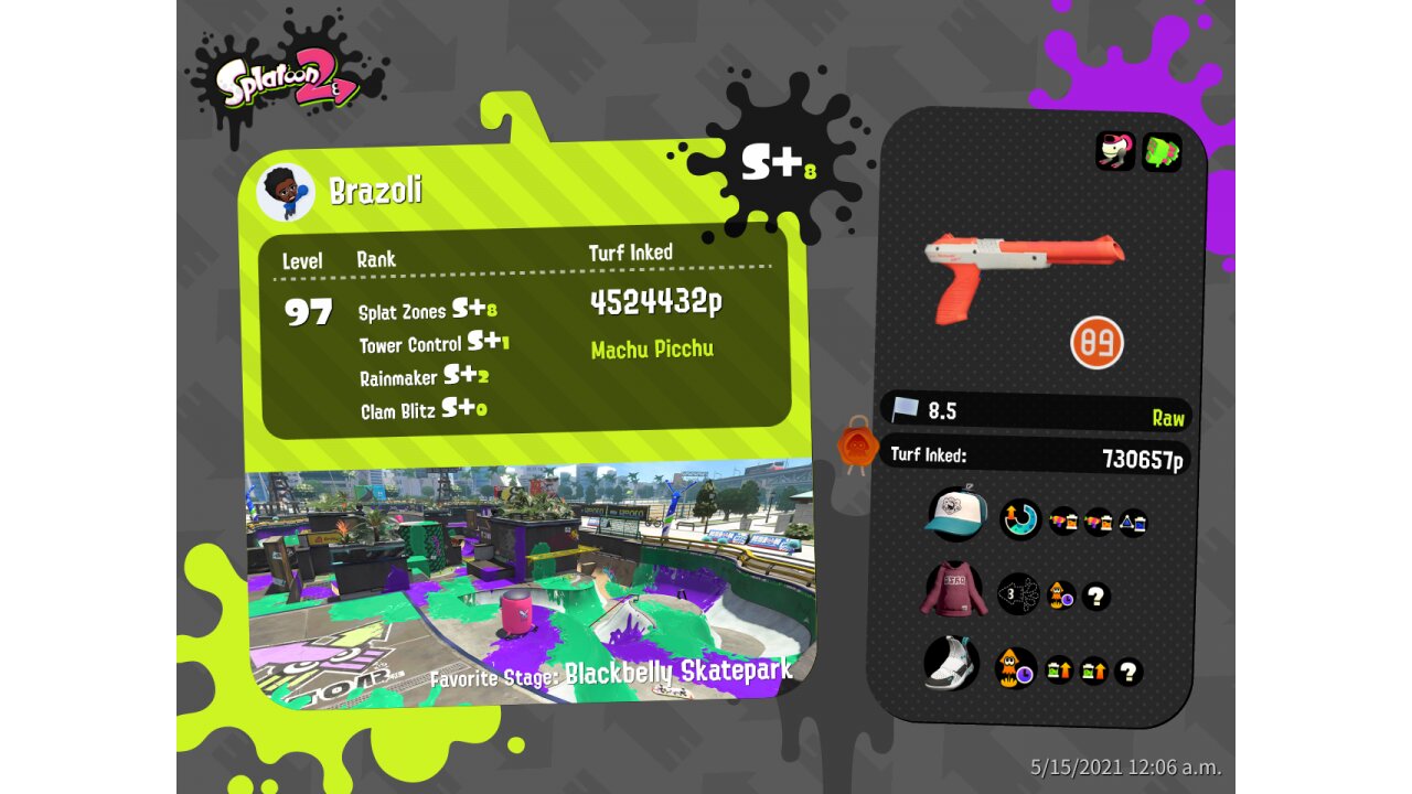 | Name | Weapon | Level | Rank | Inked | k+a/sp | k/d |