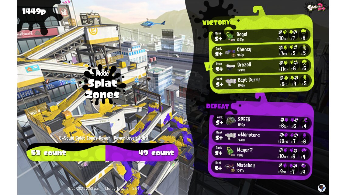 | Mode | Splat Zones - Ranked Battle | |||||||||||||||||||||||||||||||||||||
