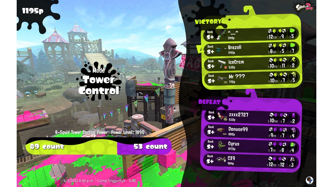 | Mode | Tower Control - Ranked Battle | |||||||||||||||||||||||||||||||||||||