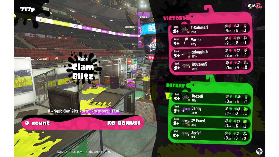| Mode | Clam Blitz - Ranked Battle | |||||||||||||||||||||||||||||||||||||