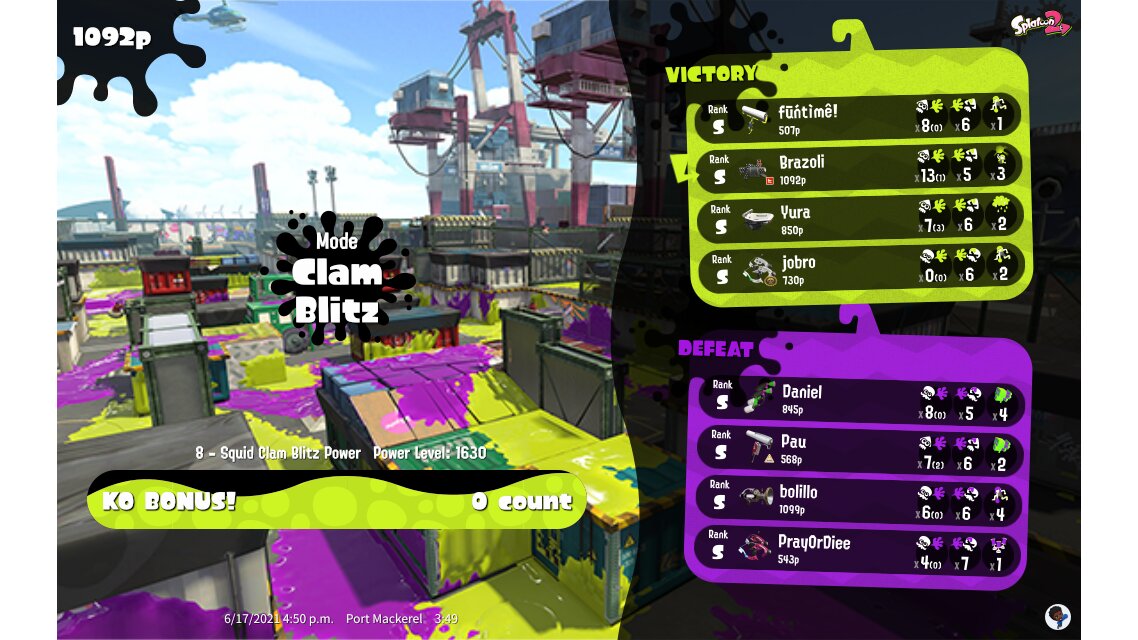 | Mode | Clam Blitz - Ranked Battle | |||||||||||||||||||||||||||||||