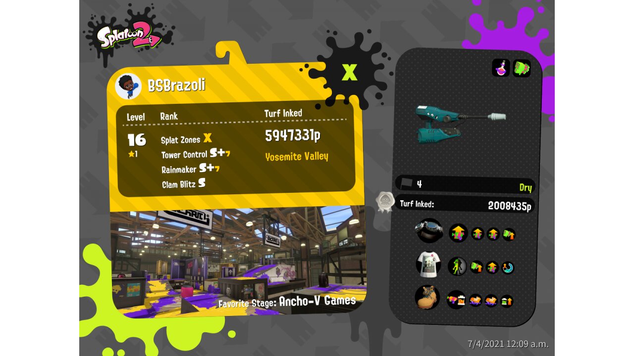 | Name | Weapon | Level | Rank | Inked | k+a/sp | k/d |