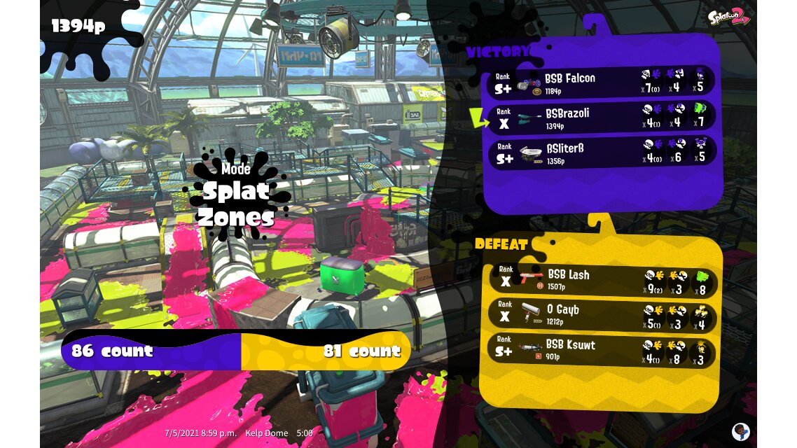 | Mode | Splat Zones - Private Battle | ||||||||||||||||||||||||||||||||||||||||