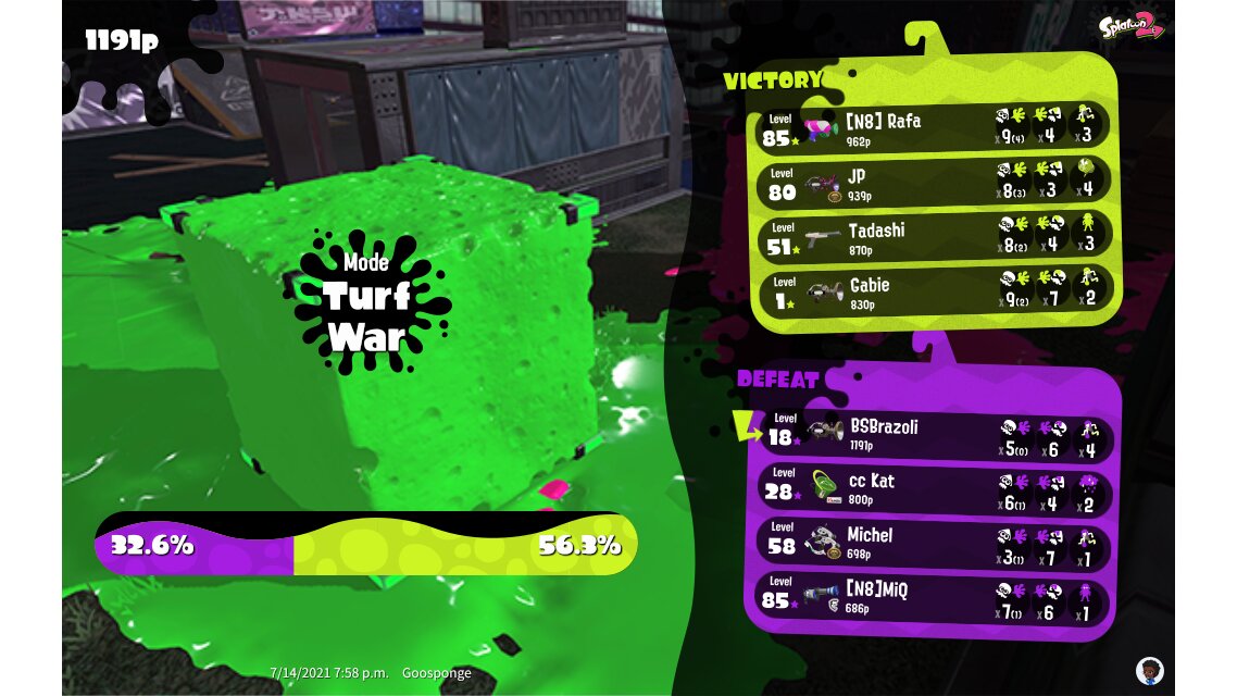 | Mode | Turf War - Private Battle | |||||||||||||||||||||||||||||||||||||