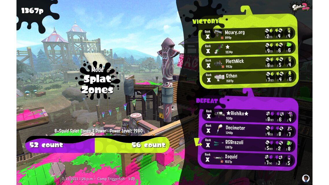 | Mode | Splat Zones - Ranked Battle | |||||||||||||||||||||||||||||||||||||