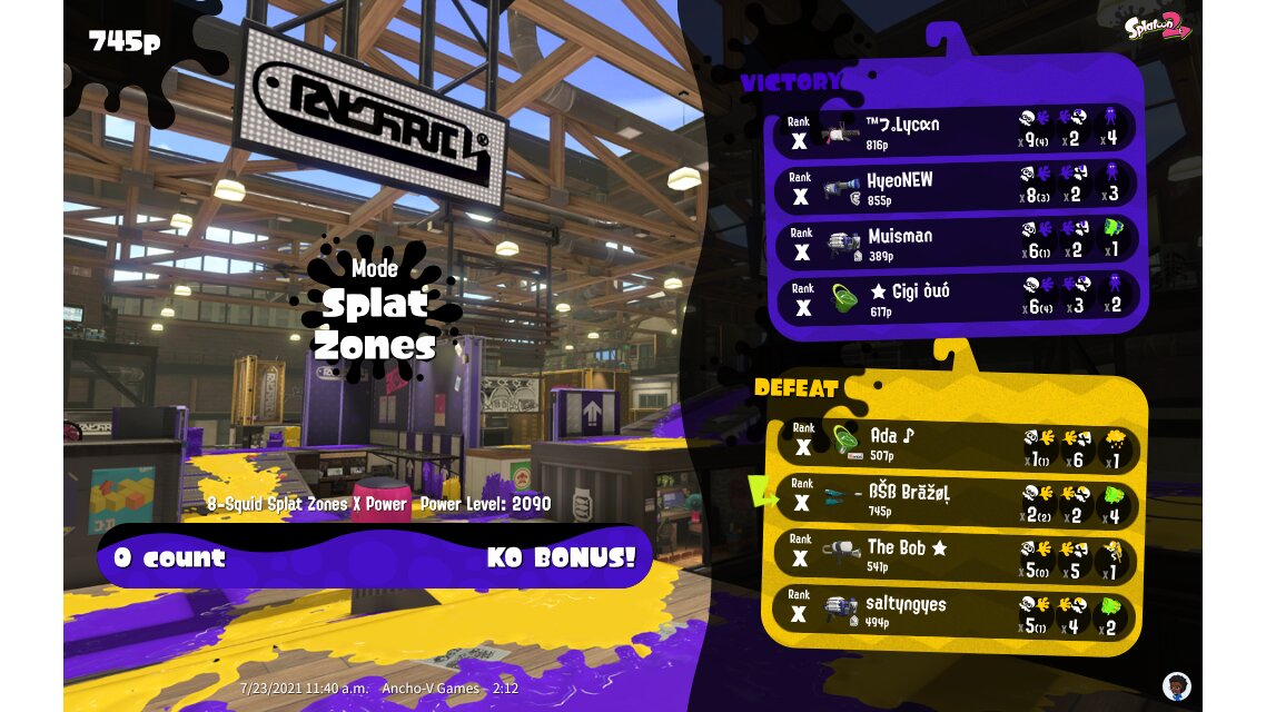 | Mode | Splat Zones - Ranked Battle | ||||||||||||||||||||||||||||||||||||||||