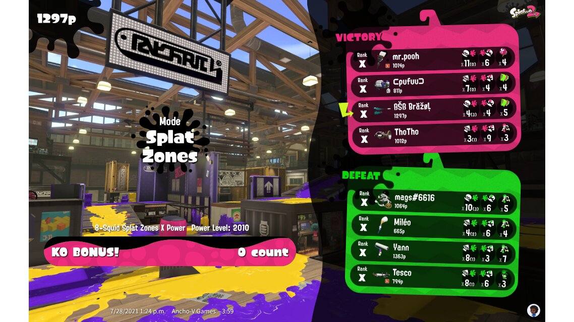 | Mode | Splat Zones - Ranked Battle | ||||||||||||||||||||||||||||||||||||||||