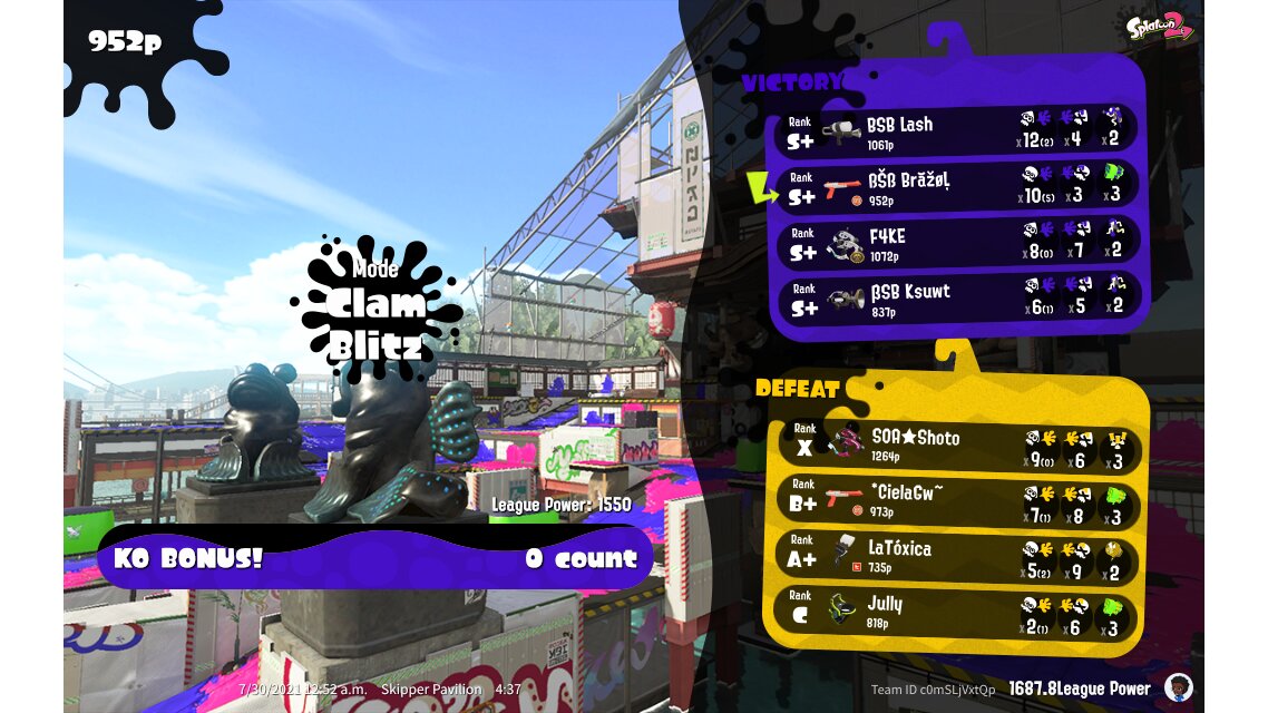 | Mode | Clam Blitz - League Battle (Quad) | |||||||||||||||||||||||||||||||||||||