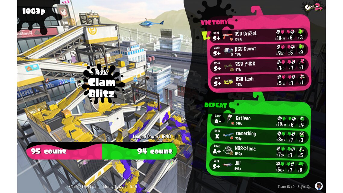 | Mode | Clam Blitz - League Battle (Quad) | |||||||||||||||||||||||||||||||||||||||||||
