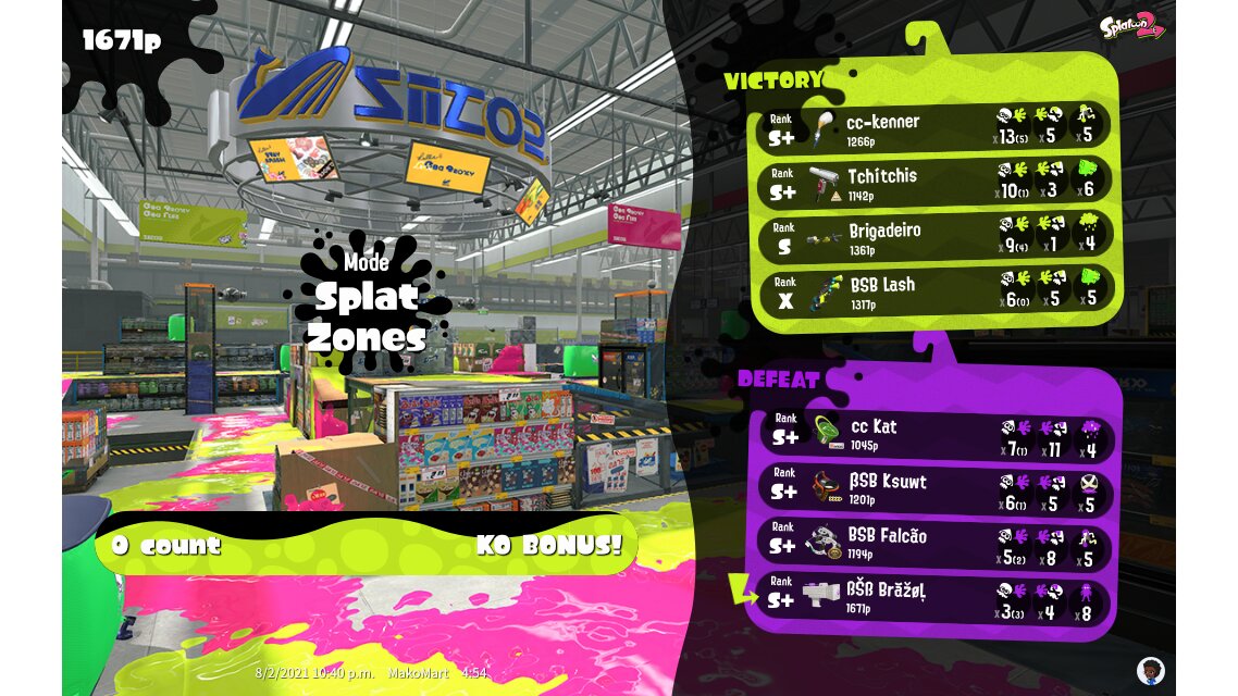 | Mode | Splat Zones - Private Battle | |||||||||||||||||||||||||||||||||||||