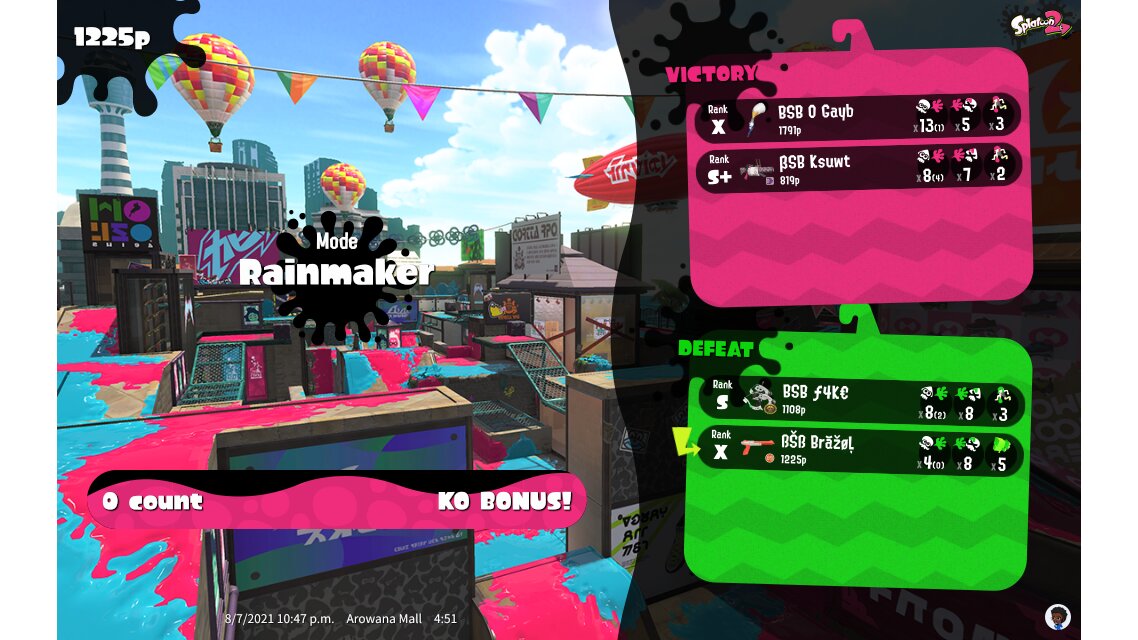 | Mode | Rainmaker - Private Battle | ||||||||||||||||||||||||||||||||||||||||||||||
