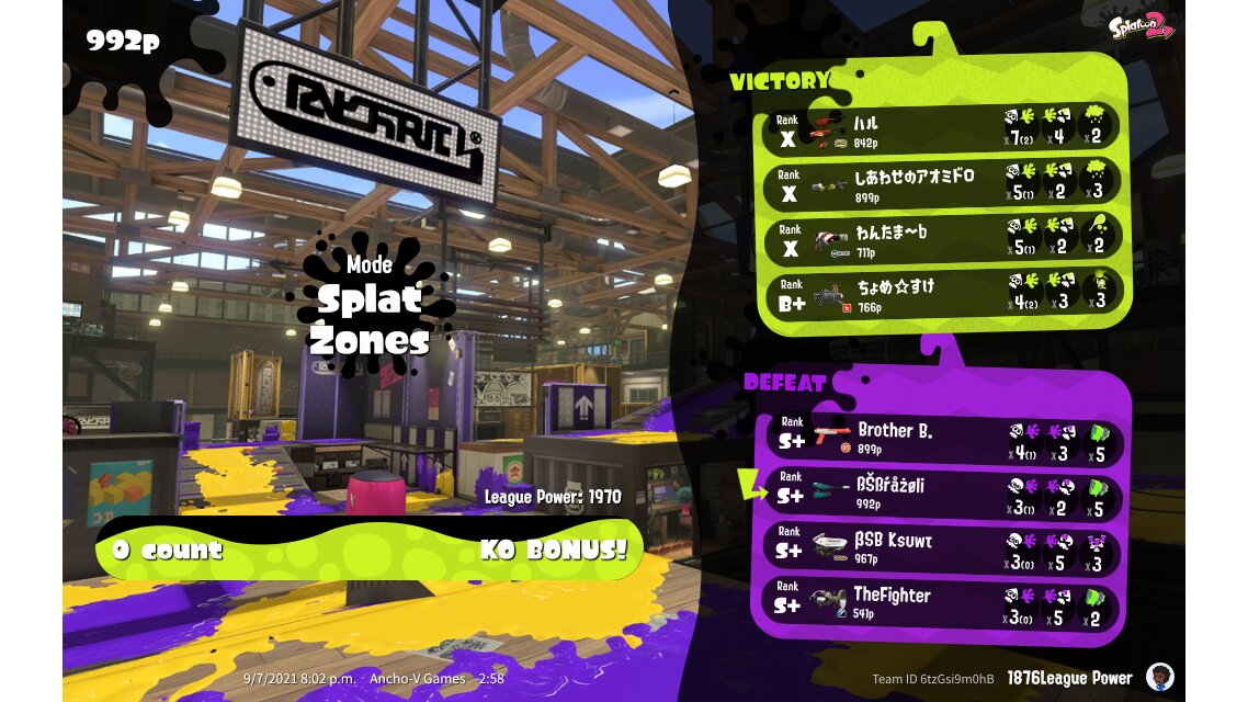 | Mode | Splat Zones - League Battle (Quad) | ||||||||||||||||||||||||||||||||||||||||