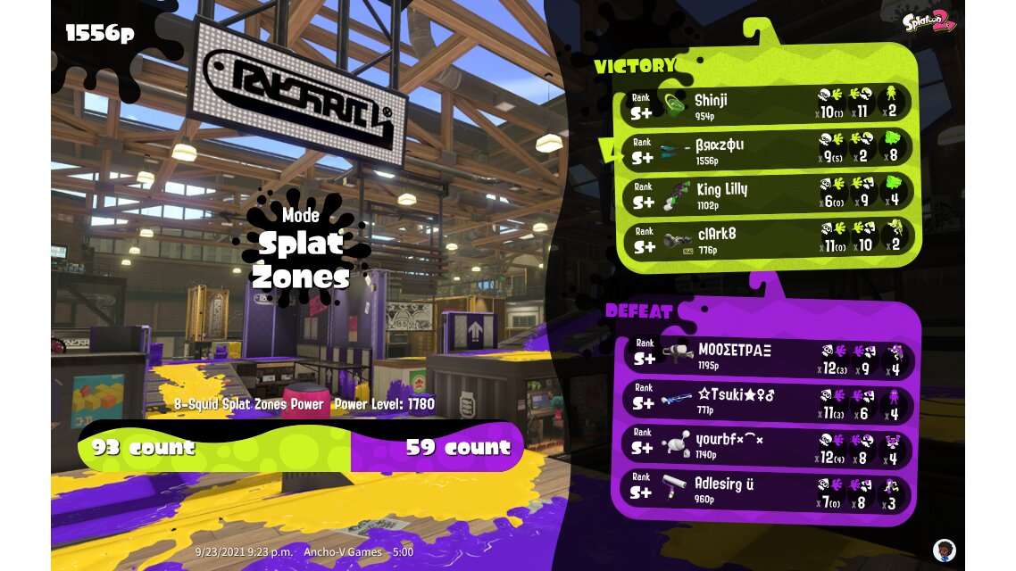 | Mode | Splat Zones - Ranked Battle | ||||||||||||||||||||||||||||||||||||||||||||||