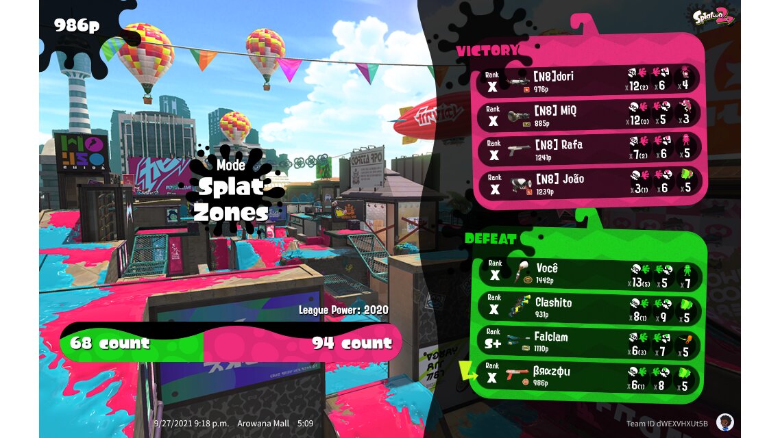 | Mode | Splat Zones - League Battle (Quad) | |||||||||||||||||||||||||||||||||||||||||||