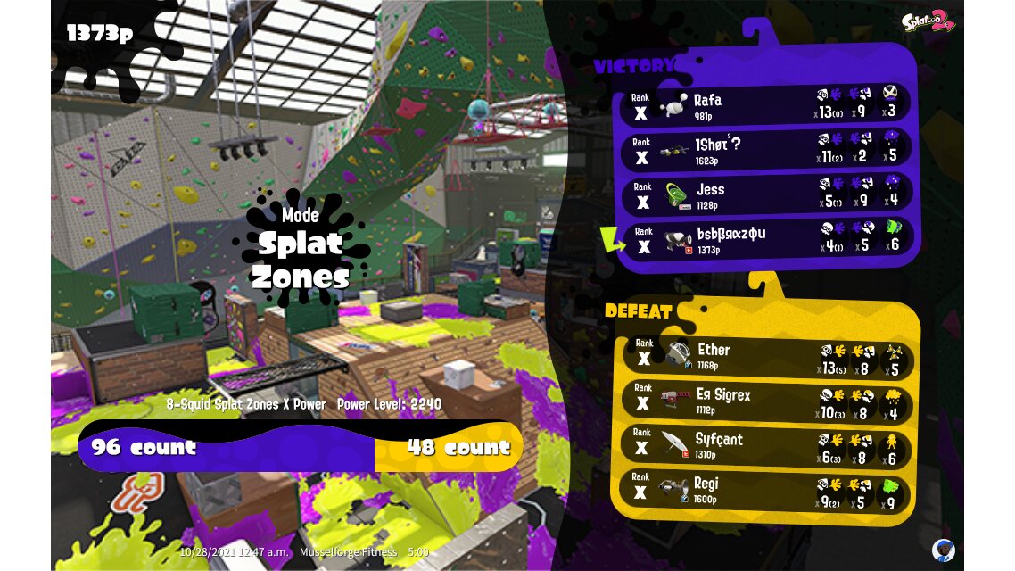| Mode | Splat Zones - Ranked Battle | ||||||||||||||||||||||||||||||||||||||||