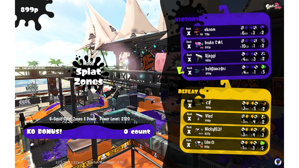 | Mode | Splat Zones - Ranked Battle | ||||||||||||||||||||||||||||||||||||||||||||||
