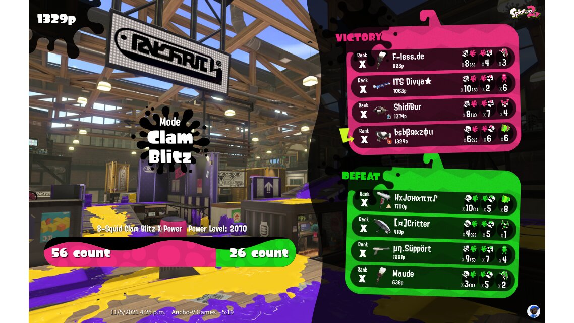 | Mode | Clam Blitz - Ranked Battle | |||||||||||||||||||||||||||||||||||||||||||