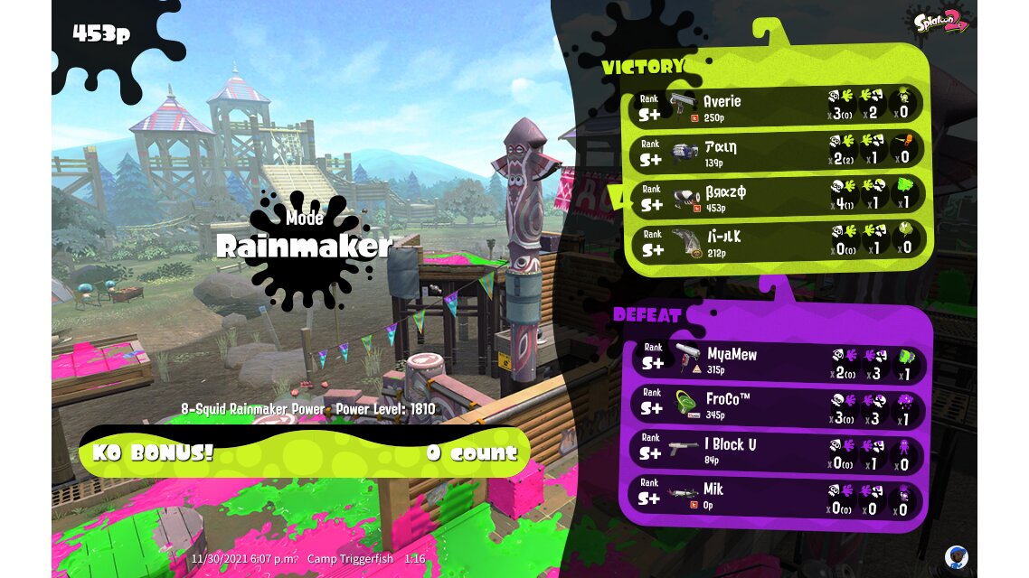 | Name | Weapon | Level | Rank | Inked | k+a/sp | k/d |