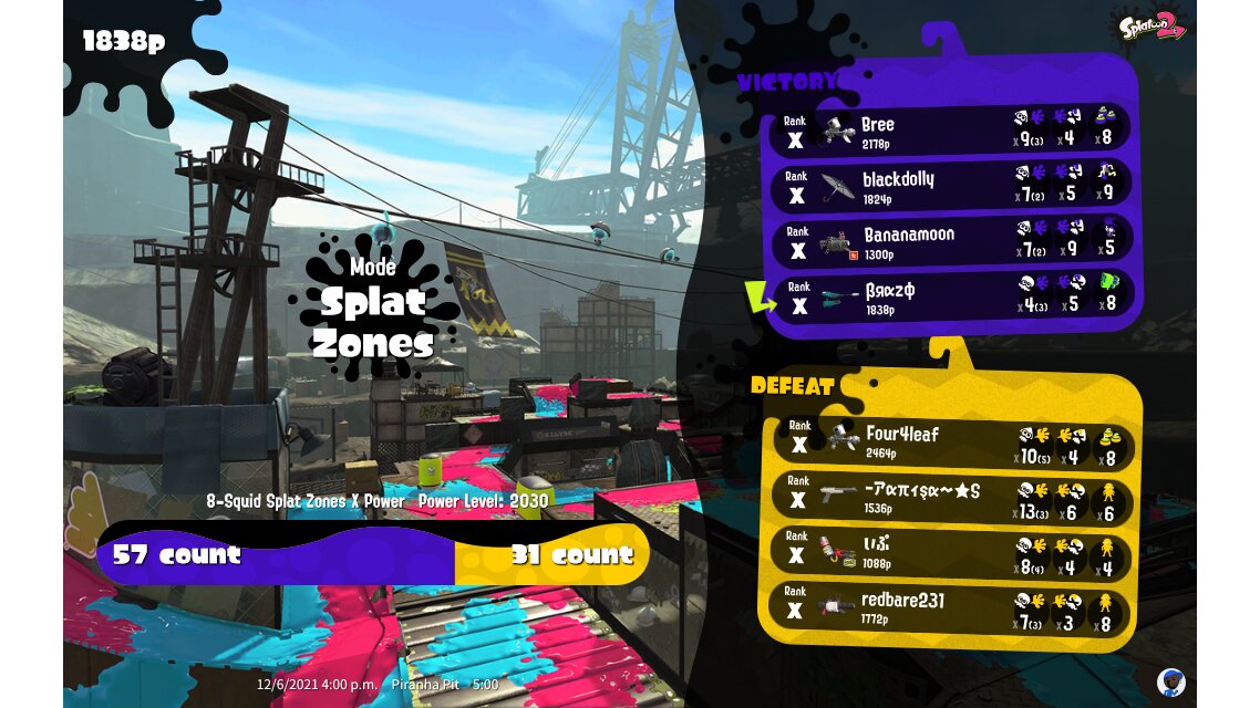 | Mode | Splat Zones - Ranked Battle | ||||||||||||||||||||||||||||||||||||||||