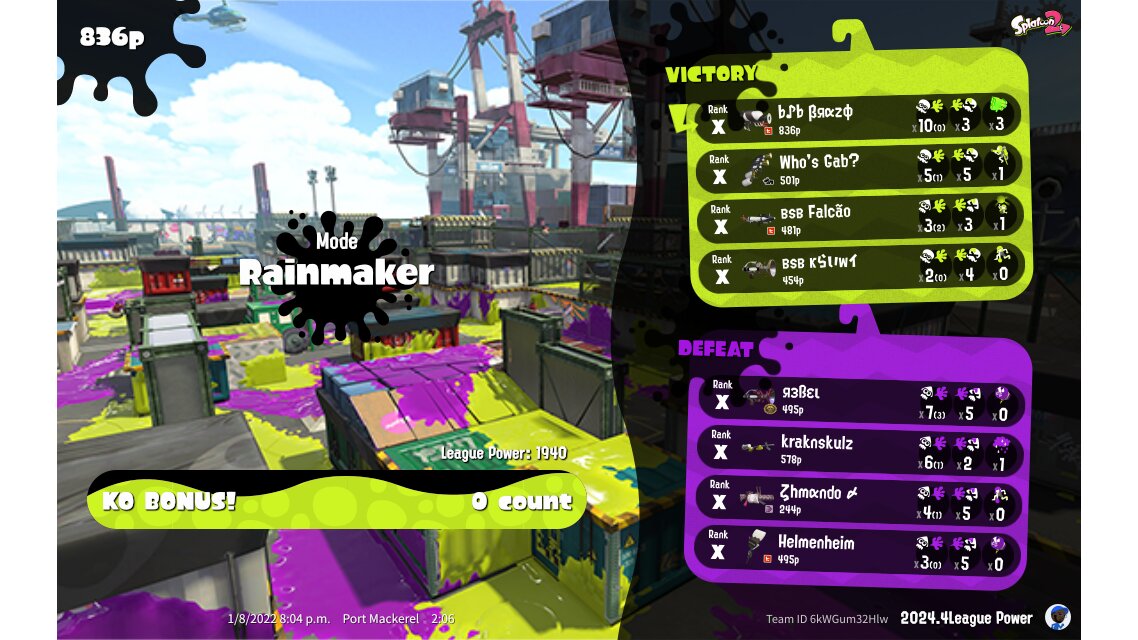 | Mode | Rainmaker - League Battle (Quad) | ||||||||||||||||||||||||||||||||||||||||||||||
