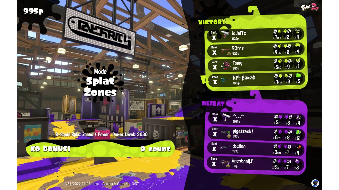 | Mode | Splat Zones - Ranked Battle | ||||||||||||||||||||||||||||||||||||||||
