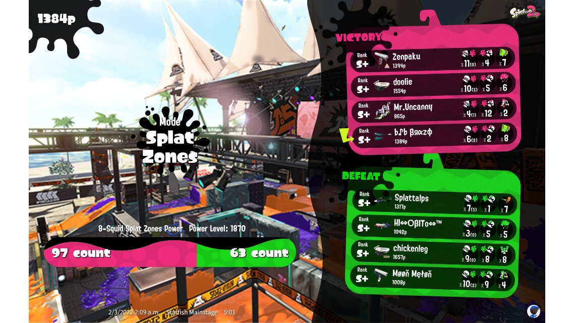 | Mode | Splat Zones - Ranked Battle | |||||||||||||||||||||||||||||||||||||||||||
