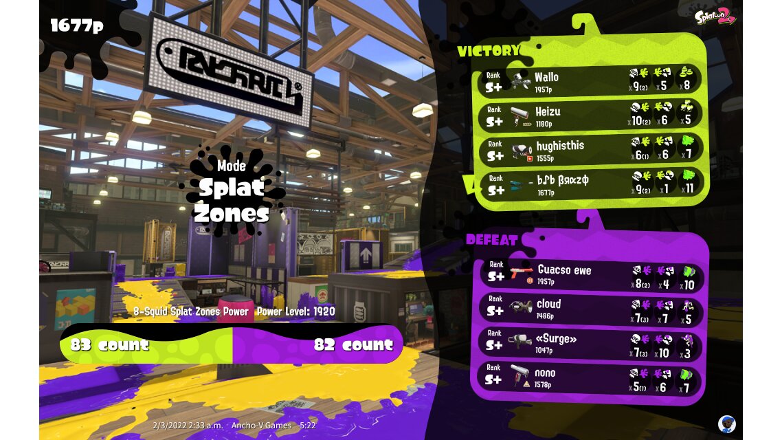 | Mode | Splat Zones - Ranked Battle | |||||||||||||||||||||||||||||||||||||||||||