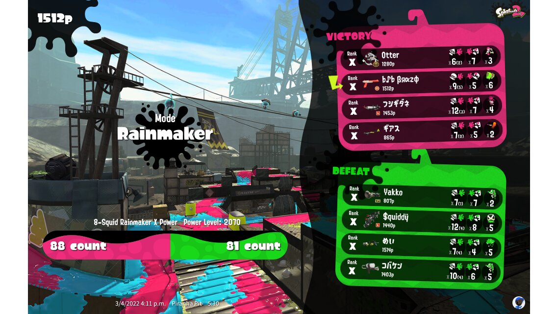 | Mode | Rainmaker - Ranked Battle | |||||||||||||||||||||||||||||||||||||||||||