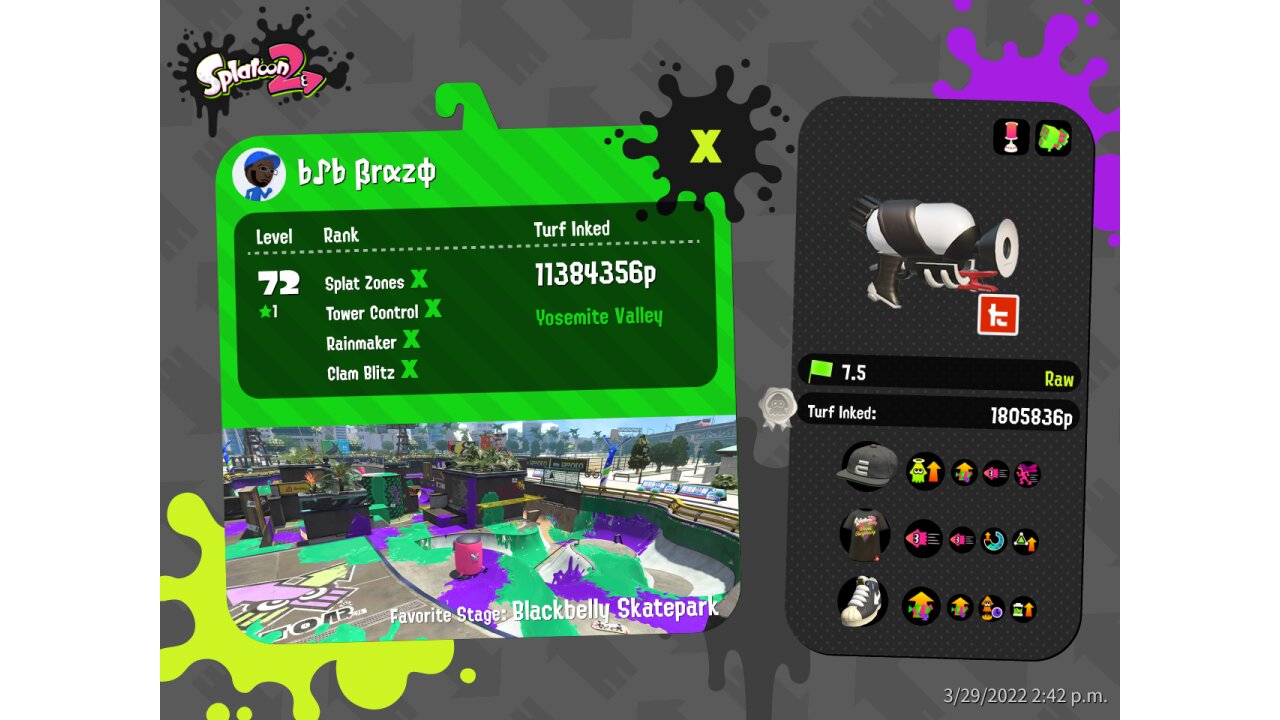 | SplatNet Battle # | 10,565 | |||||||||||||||||||||||||||||||||||||||||||