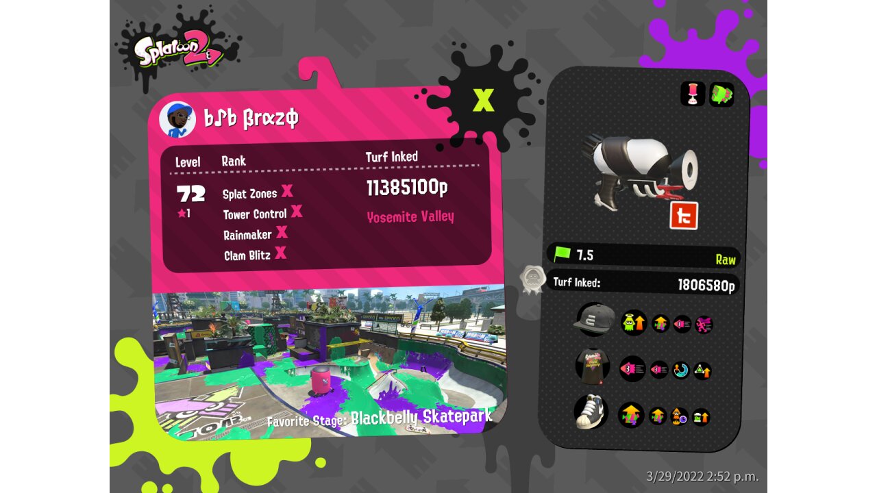 | Mode | Splat Zones - Ranked Battle | |||||||||||||||||||||||||||||||||||||||||||
