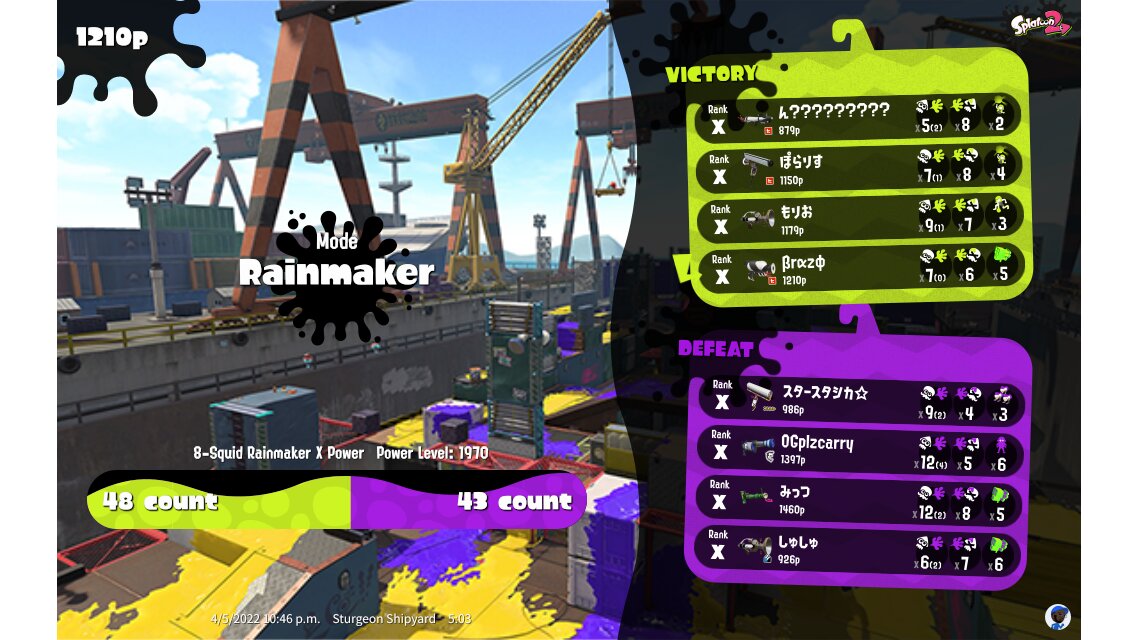 | SplatNet Battle # | 10,720 | ||||||||||||||||||||||||||||||||||||||||||||||